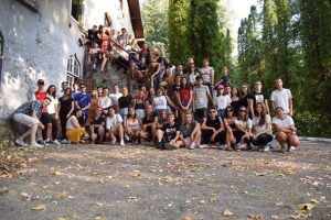 The name and gesture: each person says the name, the country from where is coming and make a gesture. The other participants hafve to reepeat 3 times the name and gesture.